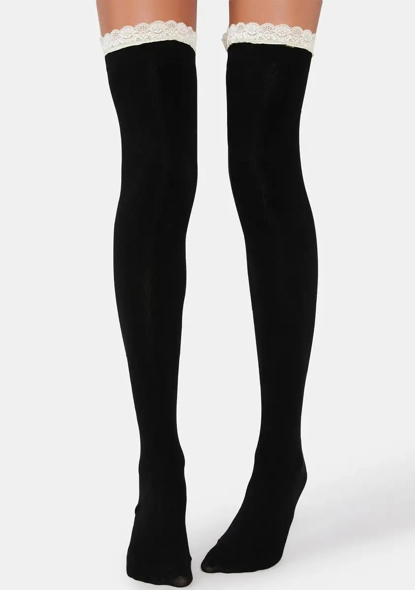 cuz you keep it cute! These socks have a thigh high fit and lace trim. Includes one black color and one wine color.