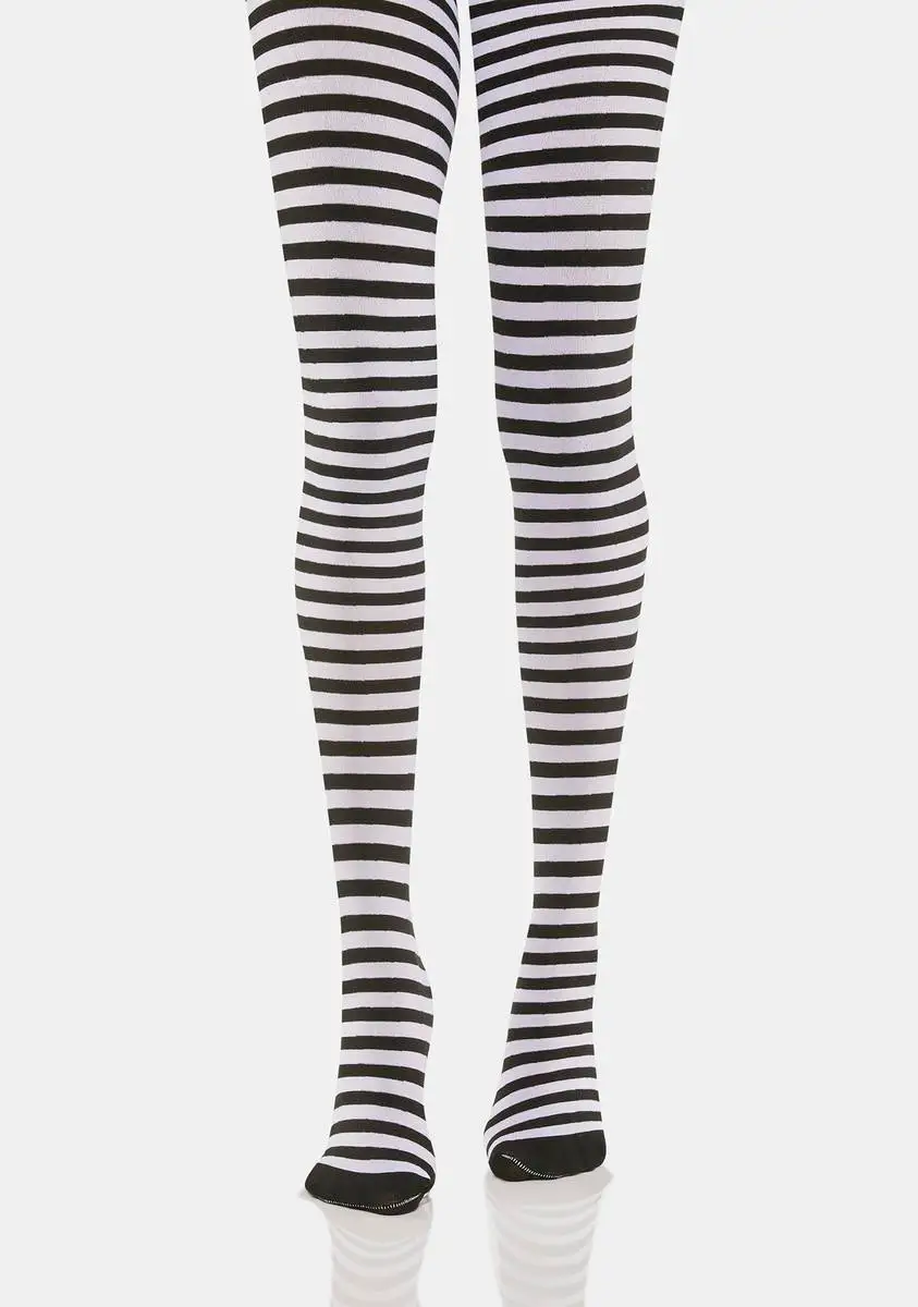 cuz you’re feeling sly in the night. These tights have a stretchy sheer construction with a striped pattern all over.
