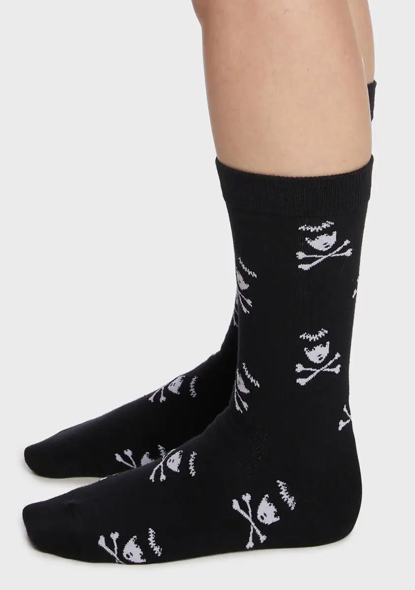 go anywhere but here. This set comes with a pair of striped socks, with a get lost text detail, and a pair of socks with an Emily crossbone print all over.