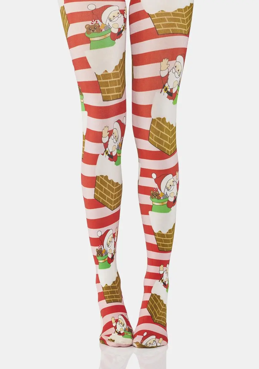 cuz it’s time to get these presents to a home! These holiday tights have a candy cane stripe pattern with Santa graphics all over.