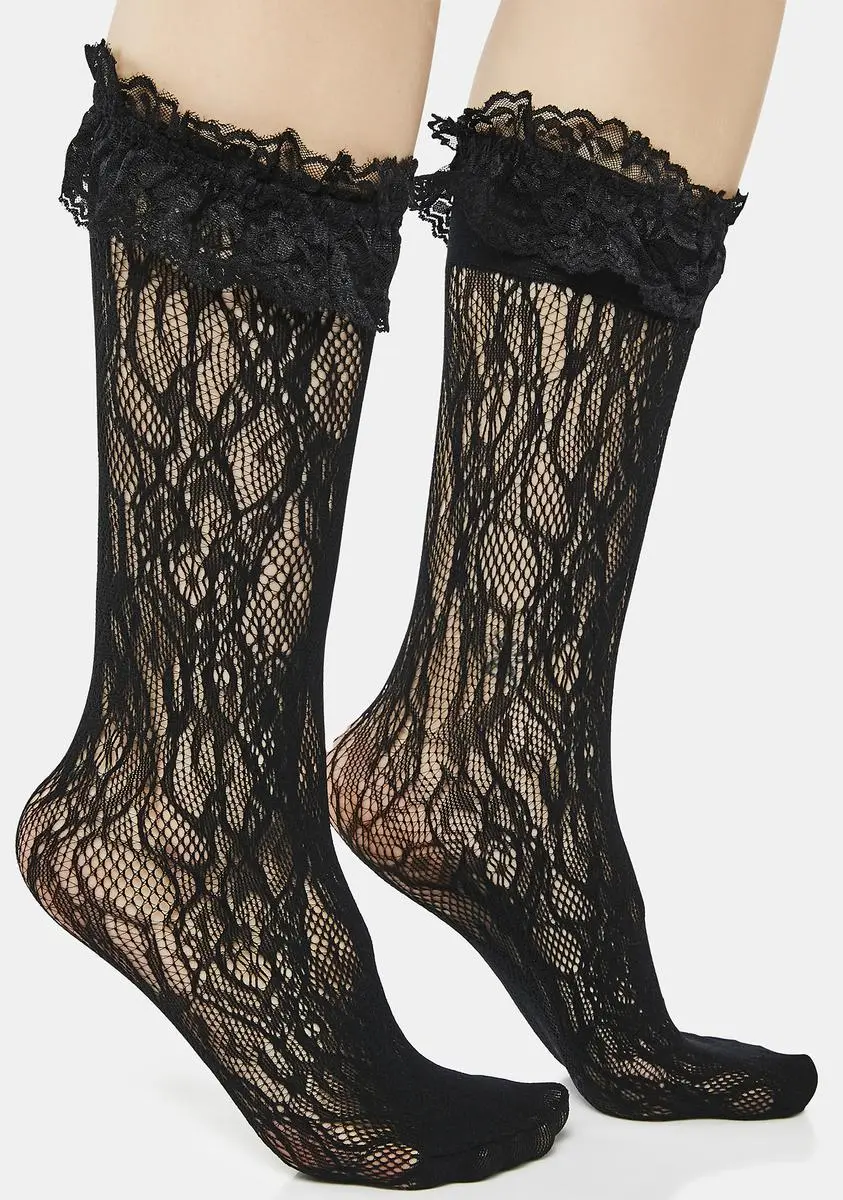 cuz make a statement. These socks have a lace construction and a ruffled cuff.