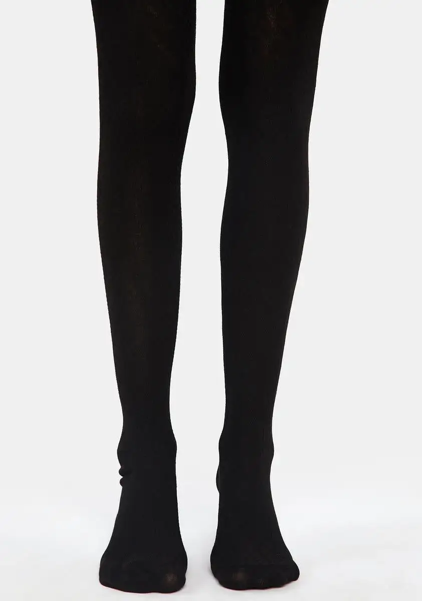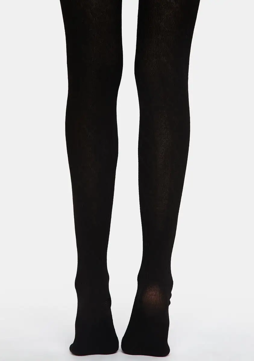 cuz get cozy. These tights have a thick knit construction and a crossing diamond pattern.