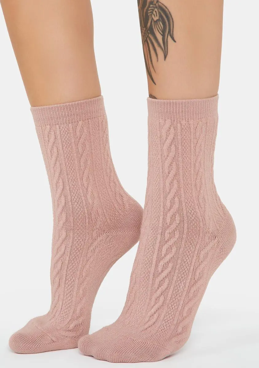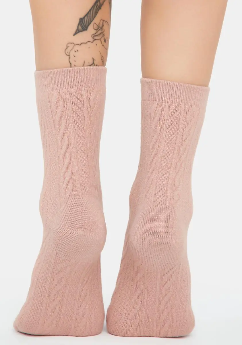 cuz you’re what it’s all about. These crew socks have a cable knit construction and a sweater like design.