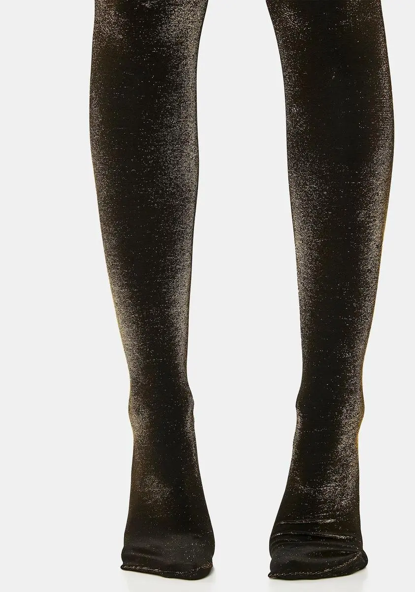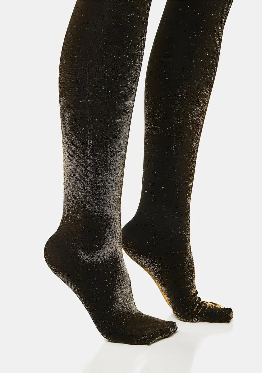 cuz you’re brilliant. These tights have a stretchy nylon construction, an opaque design, and a metallic shimmering finish.