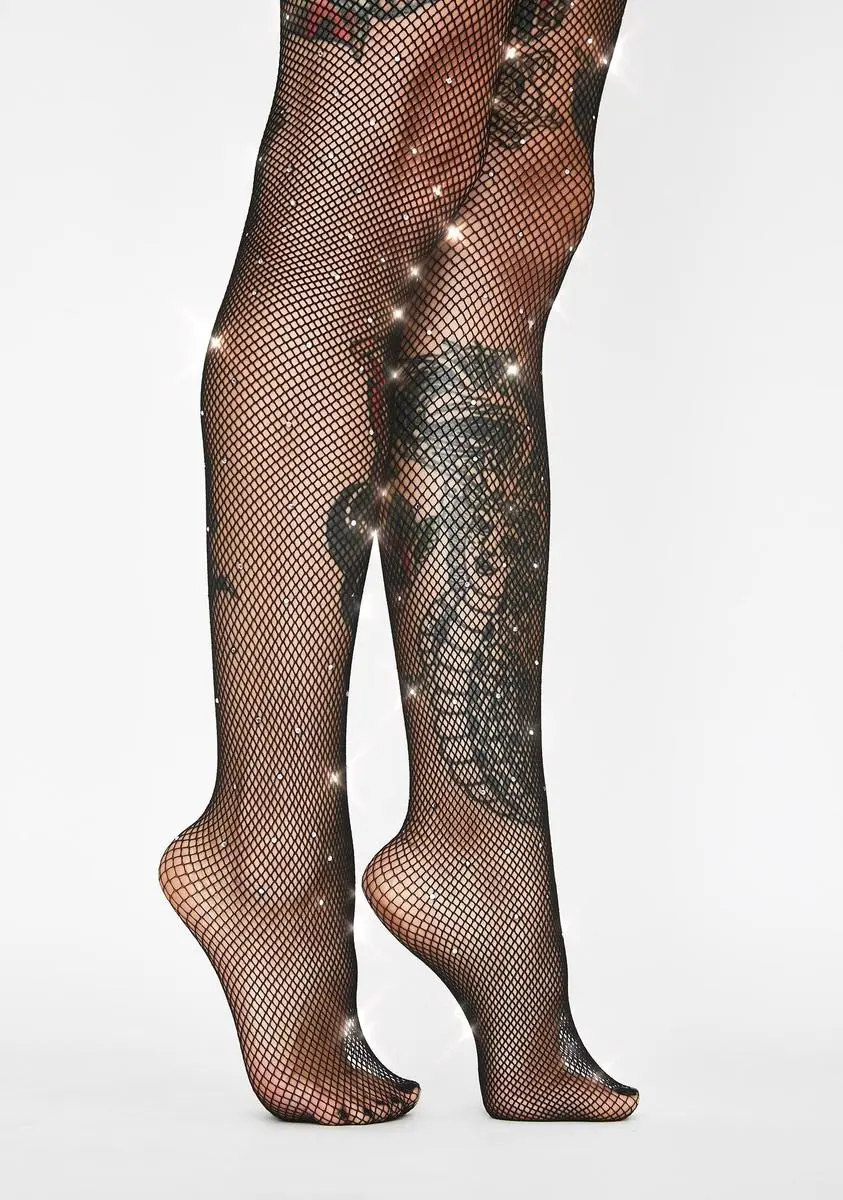 cuz ya icy from head to toe! Dazzle âem in these hot AF tights that have a sheer fishnet construction, high waist fit and lil rhinestones all ova.