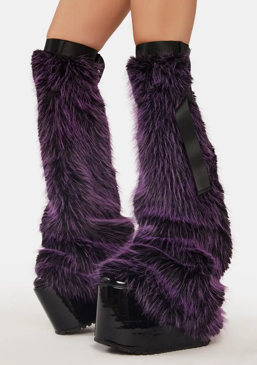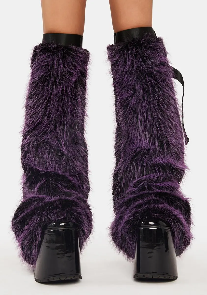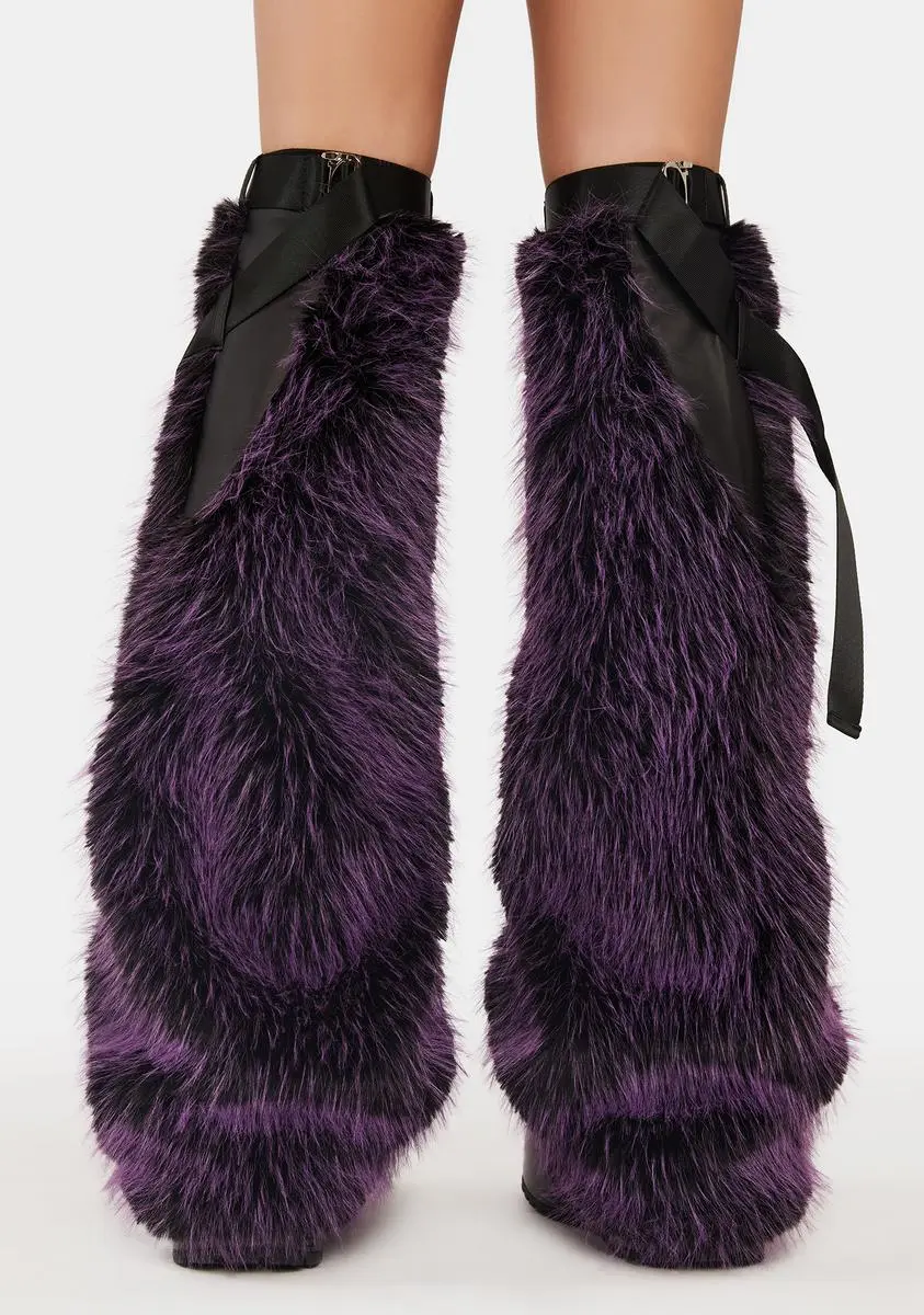 cuz your looks are trending. These leg warmers have a faux fur construction, nylon straps, and adjustable metal buckle closures.