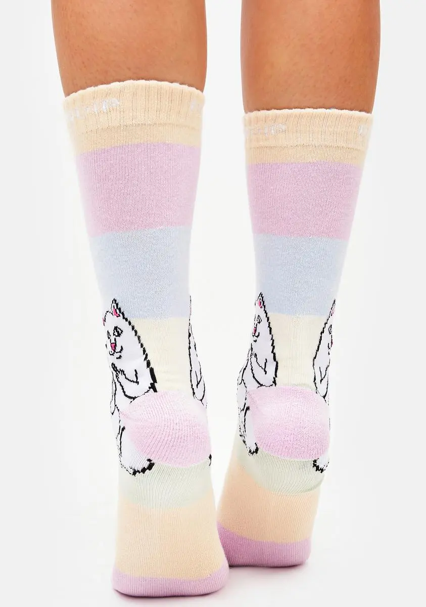 cuz you are the fun one. These crew socks are pastel with a graphic design.