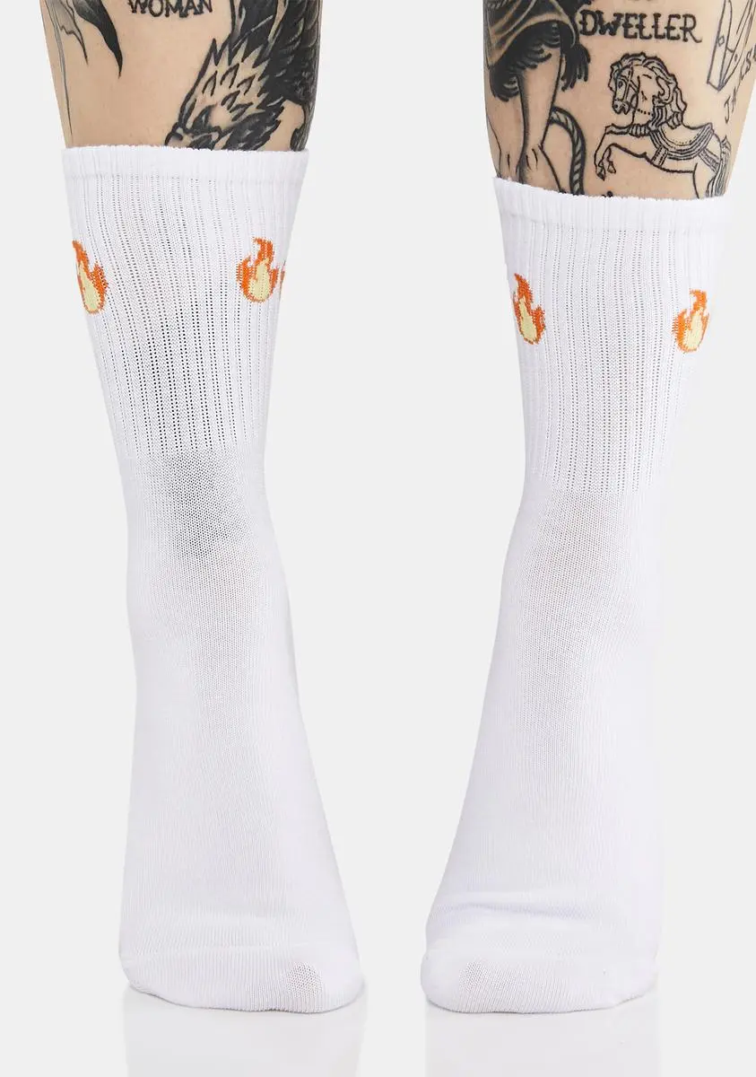 cuz we were meant to be. These crew socks have a ribbed construction and flames printed at sides.