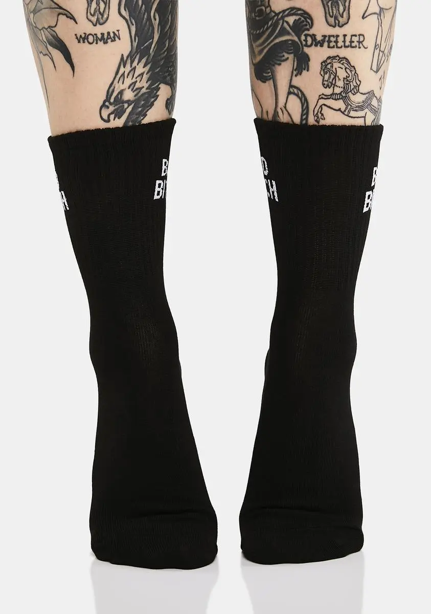 cuz you have to earn your spot. These crew socks come in a ribbed construction, with ‘bad bitch’ text details.