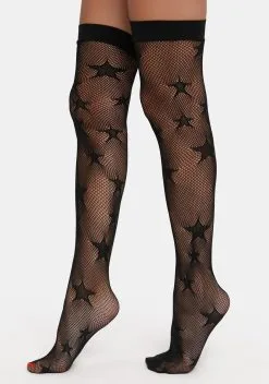 cuz get in the haunted zone. These thigh highs have a fishnet construction and an all over skull and crossbones print.
