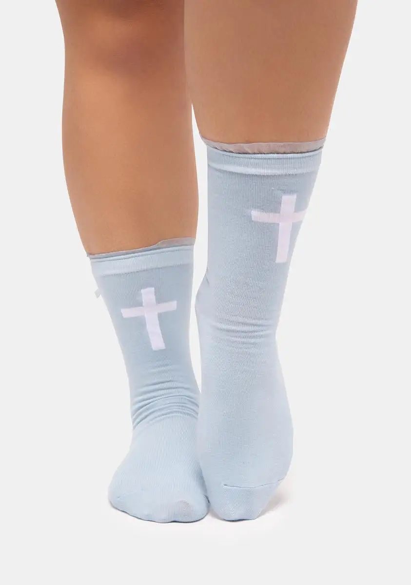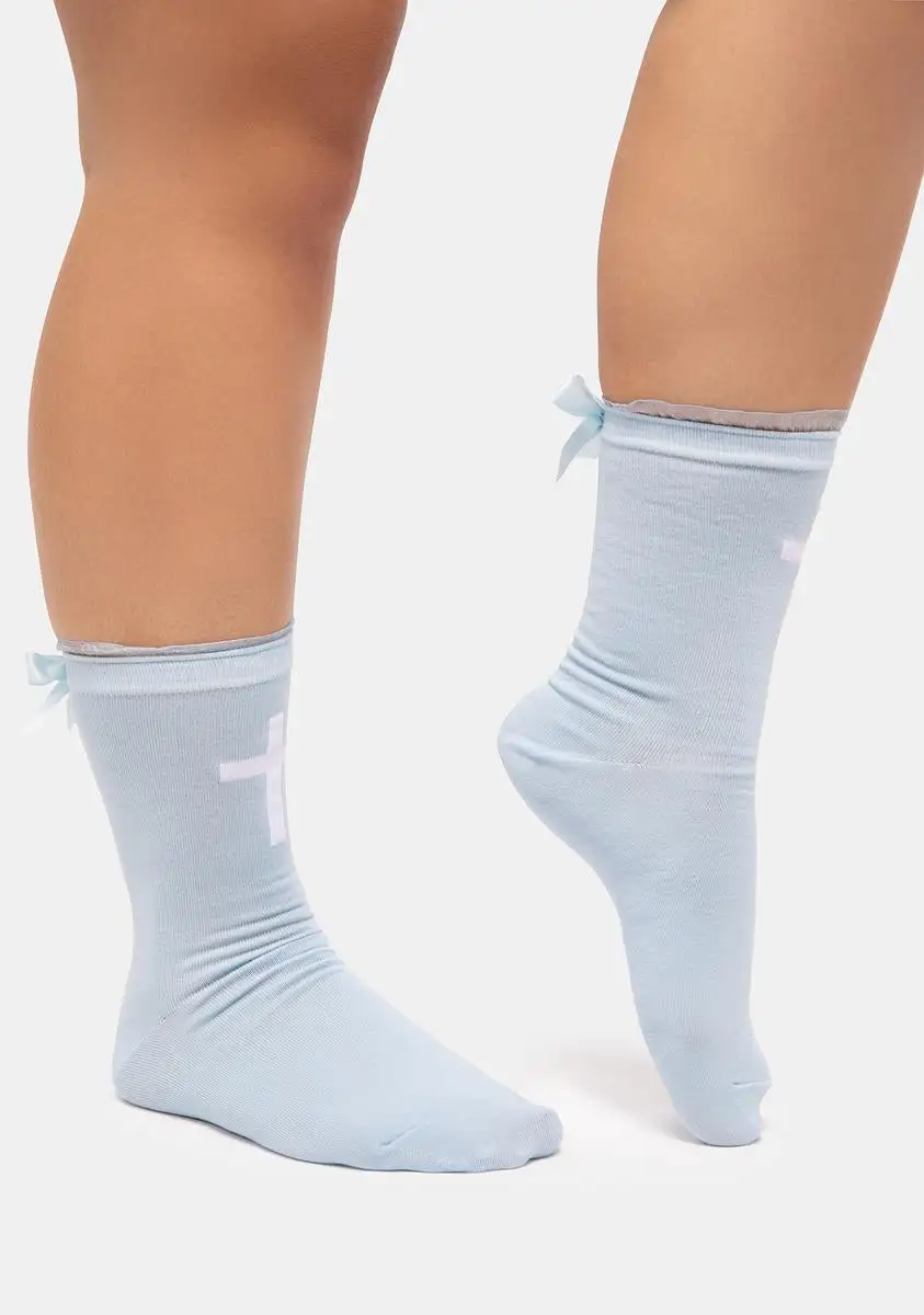 calling all angels! These crew socks have crosses, bows, and ruffles.