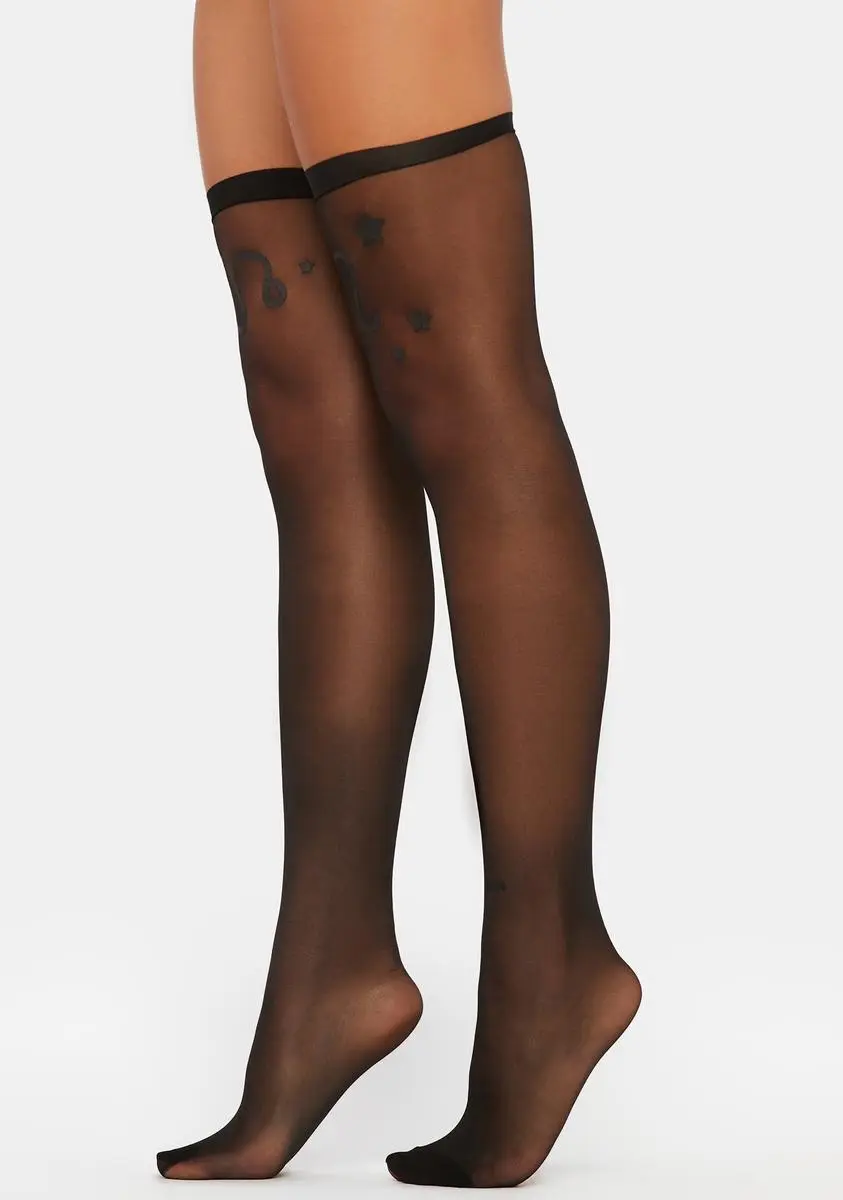 cuz you rep the best sign! These sheer mesh thigh high stockings have a stretchy material and zodiac graphics.