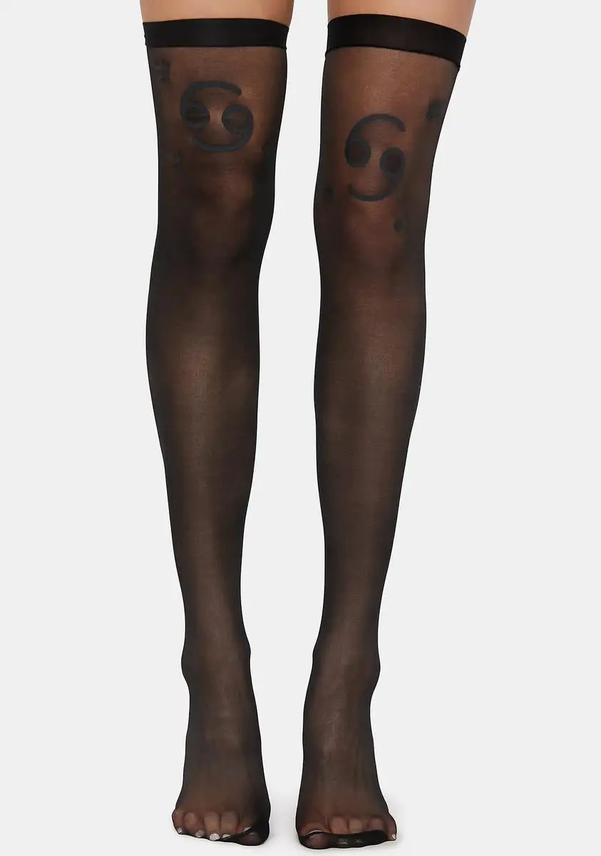 cuz you’re feelin’ a little crabby. These thigh high stockings have a sheer construction and a Cancer zodiac-themed symbol at front.
