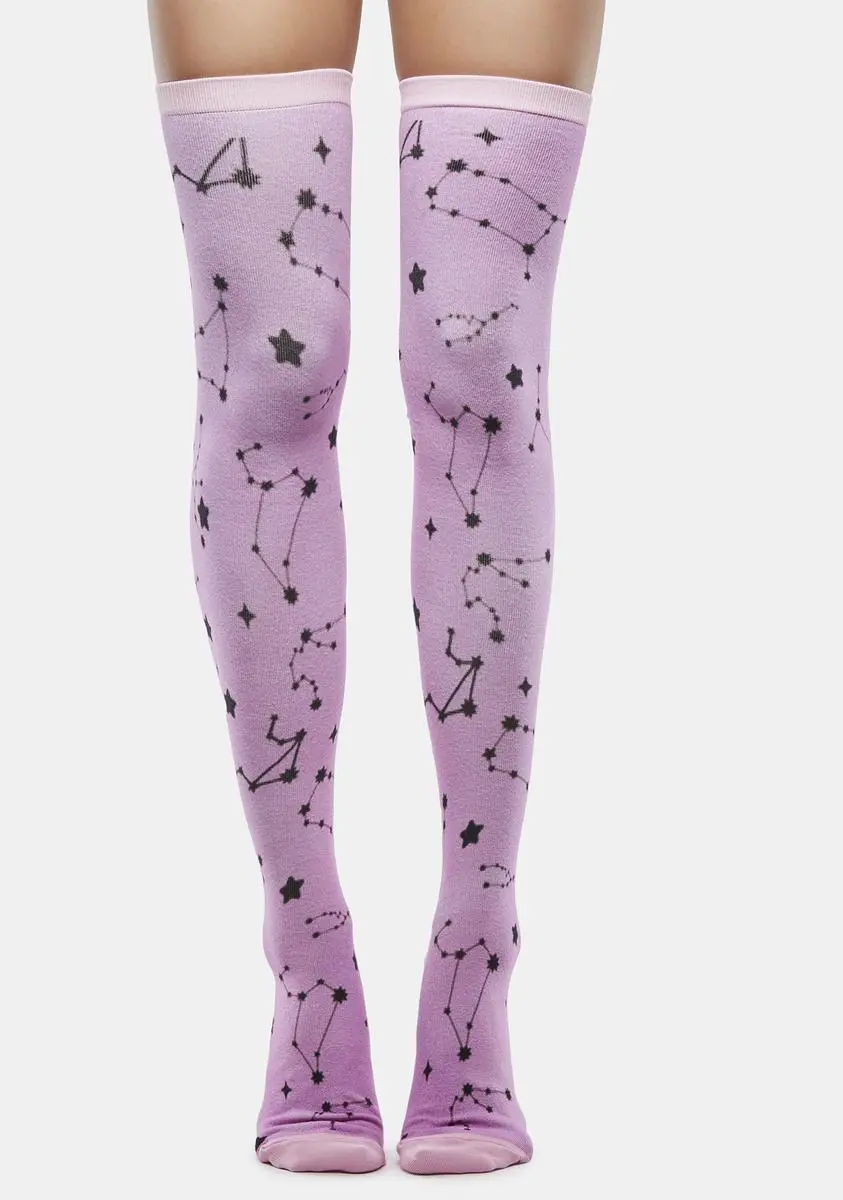 cuz I know everything about you. These socks come in a thigh high knit construction, with an astrological star print all over.