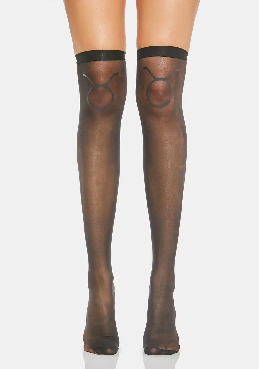 cuz you rep the best sign! These stretchy sheer thigh high socks feature Taurus symbols on the front.