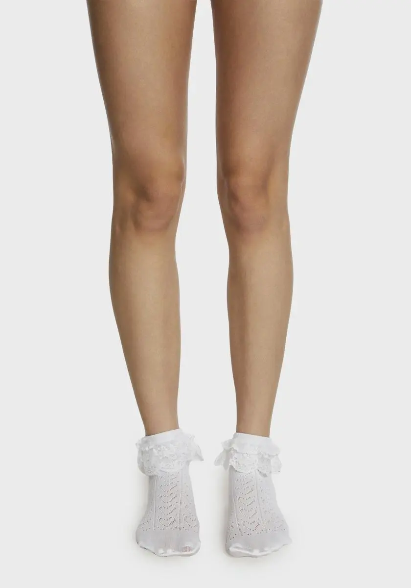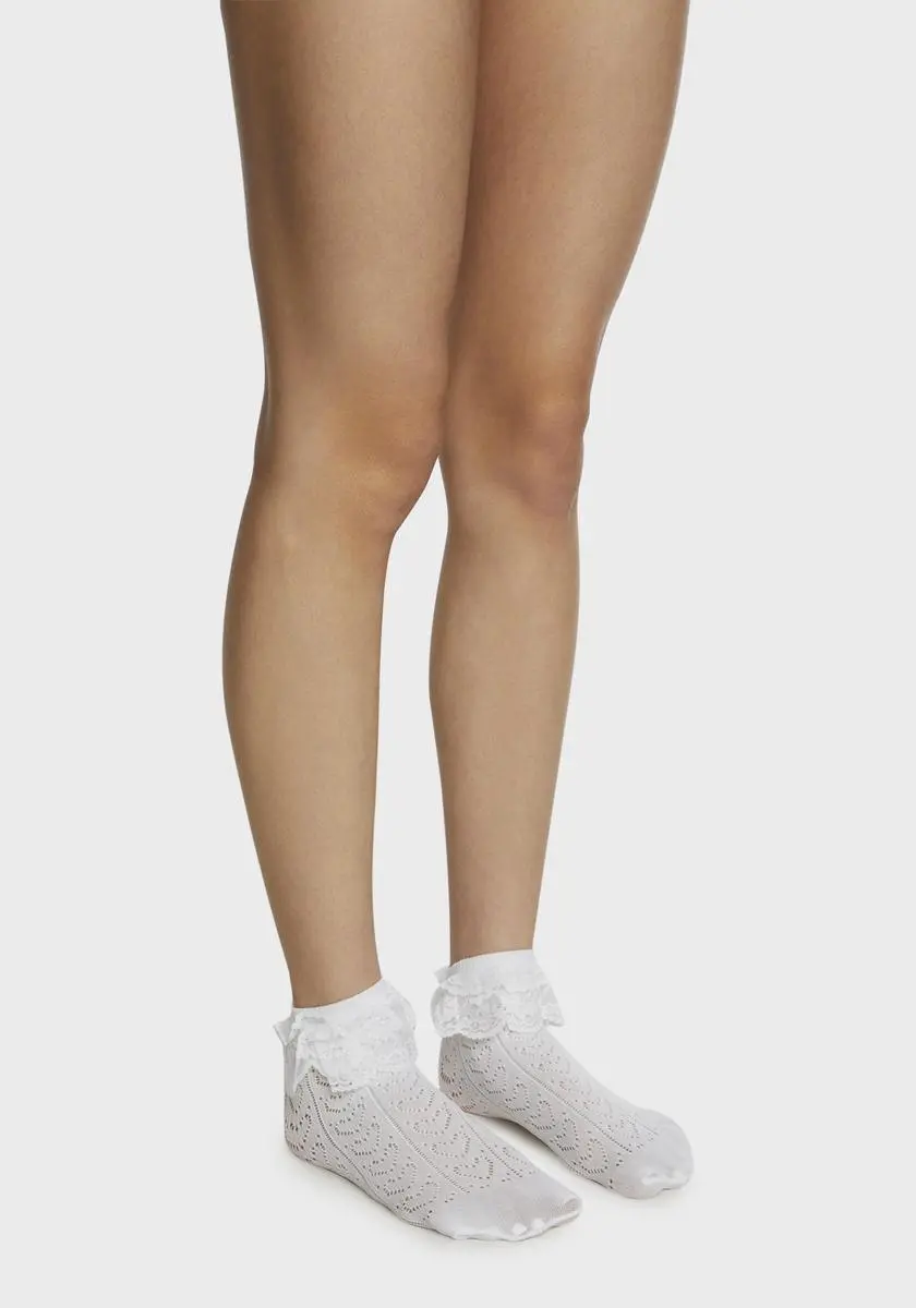 cuz you want all their love! Steal their hearts in these pointelle ankle socks that have a heart pattern all over and ruffle trim.