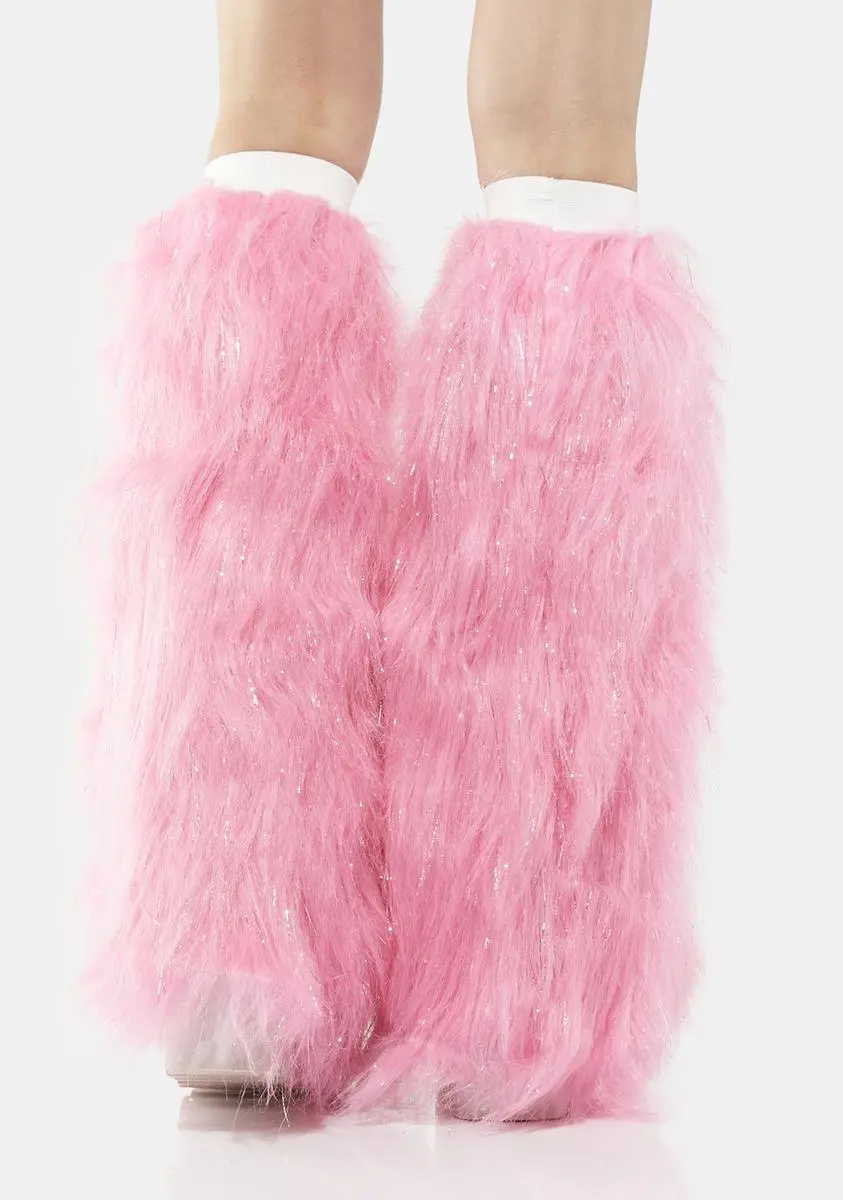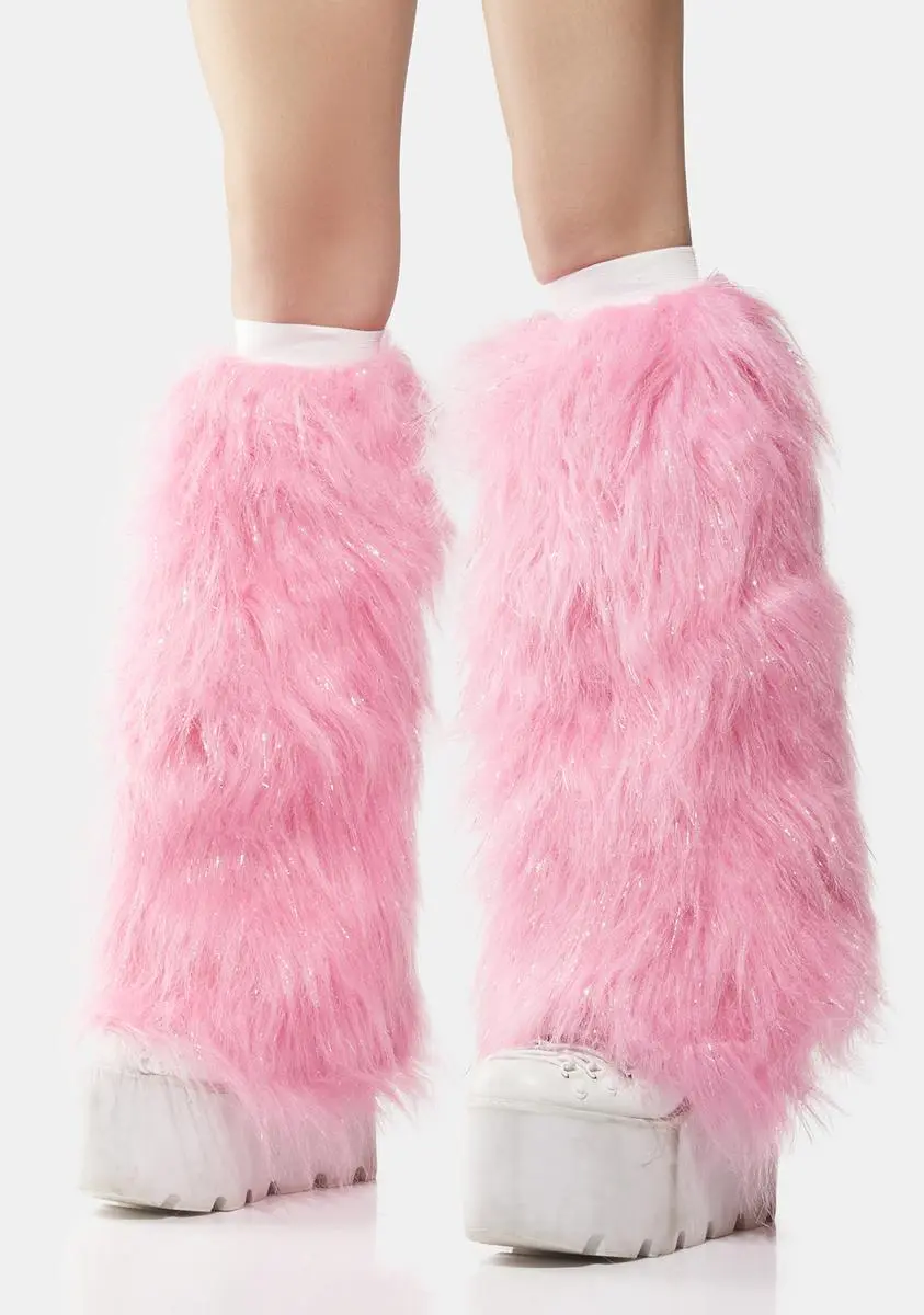 cuz you’re not interested in a quiet arrival. These leg warmers have a rave-ready faux fur construction, eye-catching metallic strands, and elasticated bands at top.