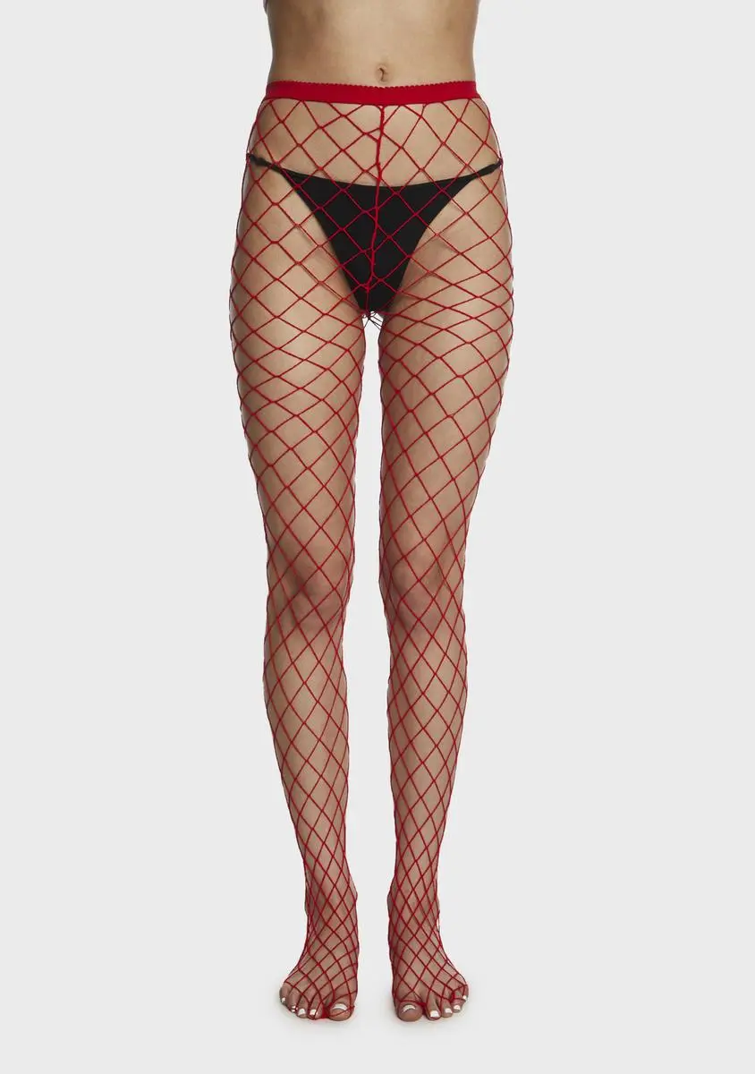 cuz you’re a diamond in the rough, babe. These fishnets tights have a large diamond design and a stretchy red construction.