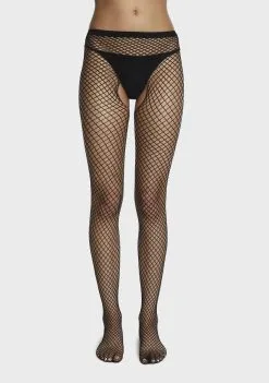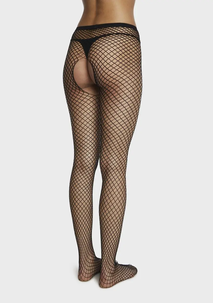 cuz you’re playin’ naughty, bb. These fishnet tights have a crotchless design and a stretchy pull-on fit.