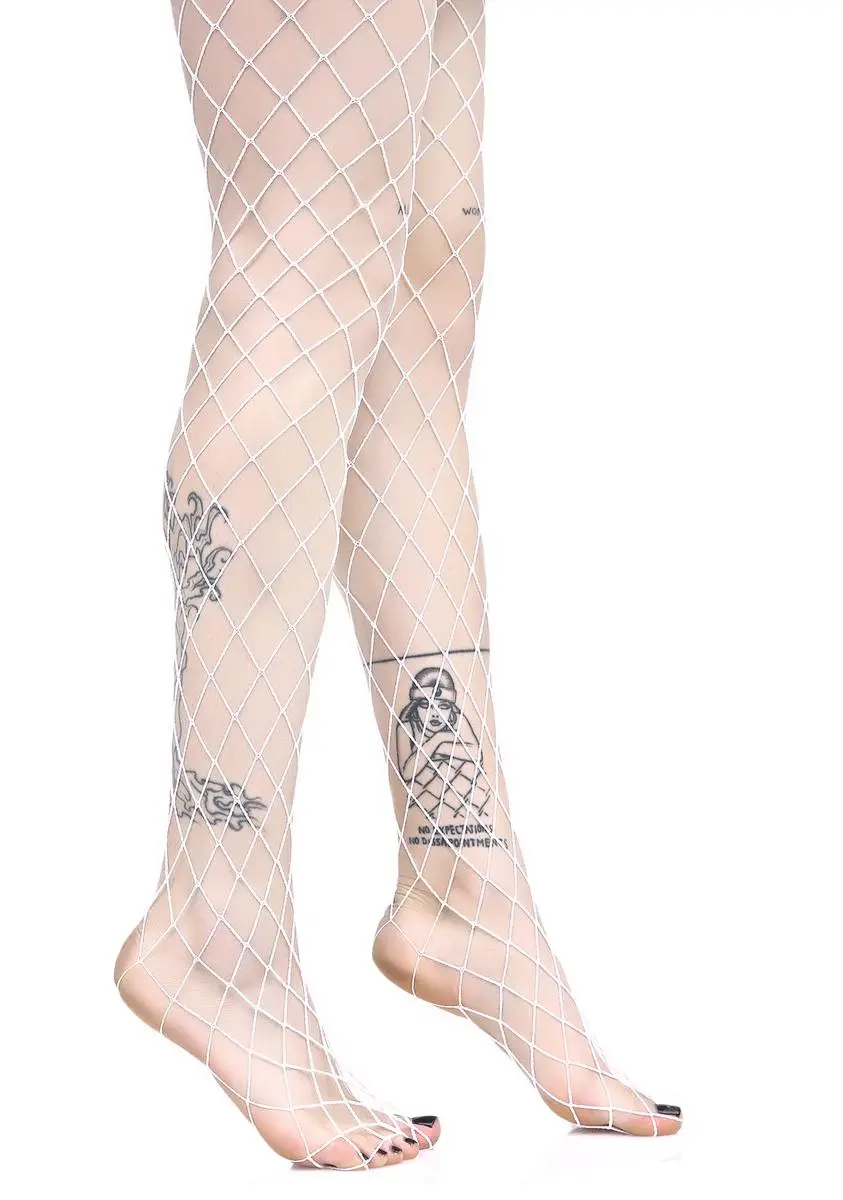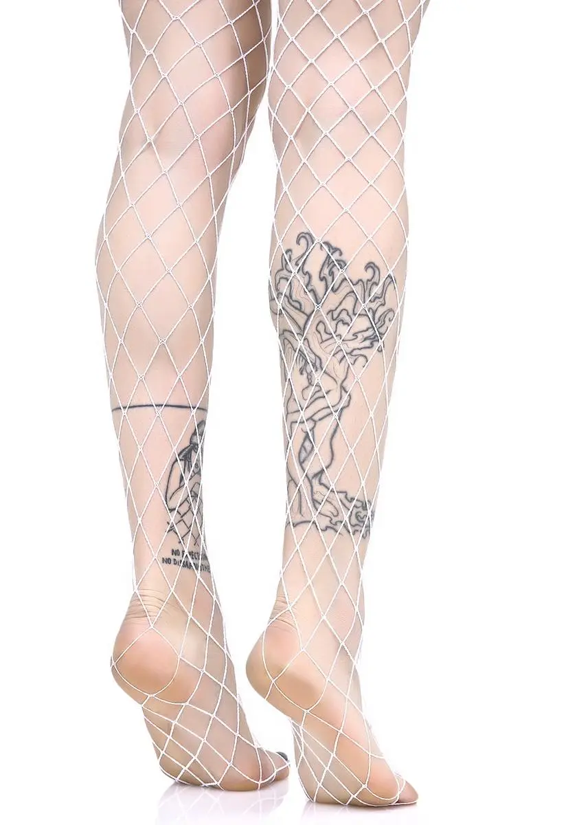 no one can dull yer shine, bb. These fishnets feature a large diamond design and a stretchy white nylon construction.