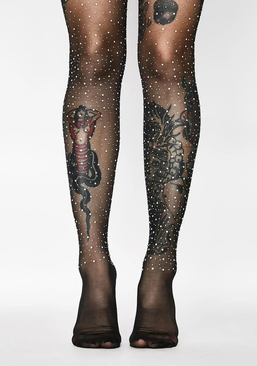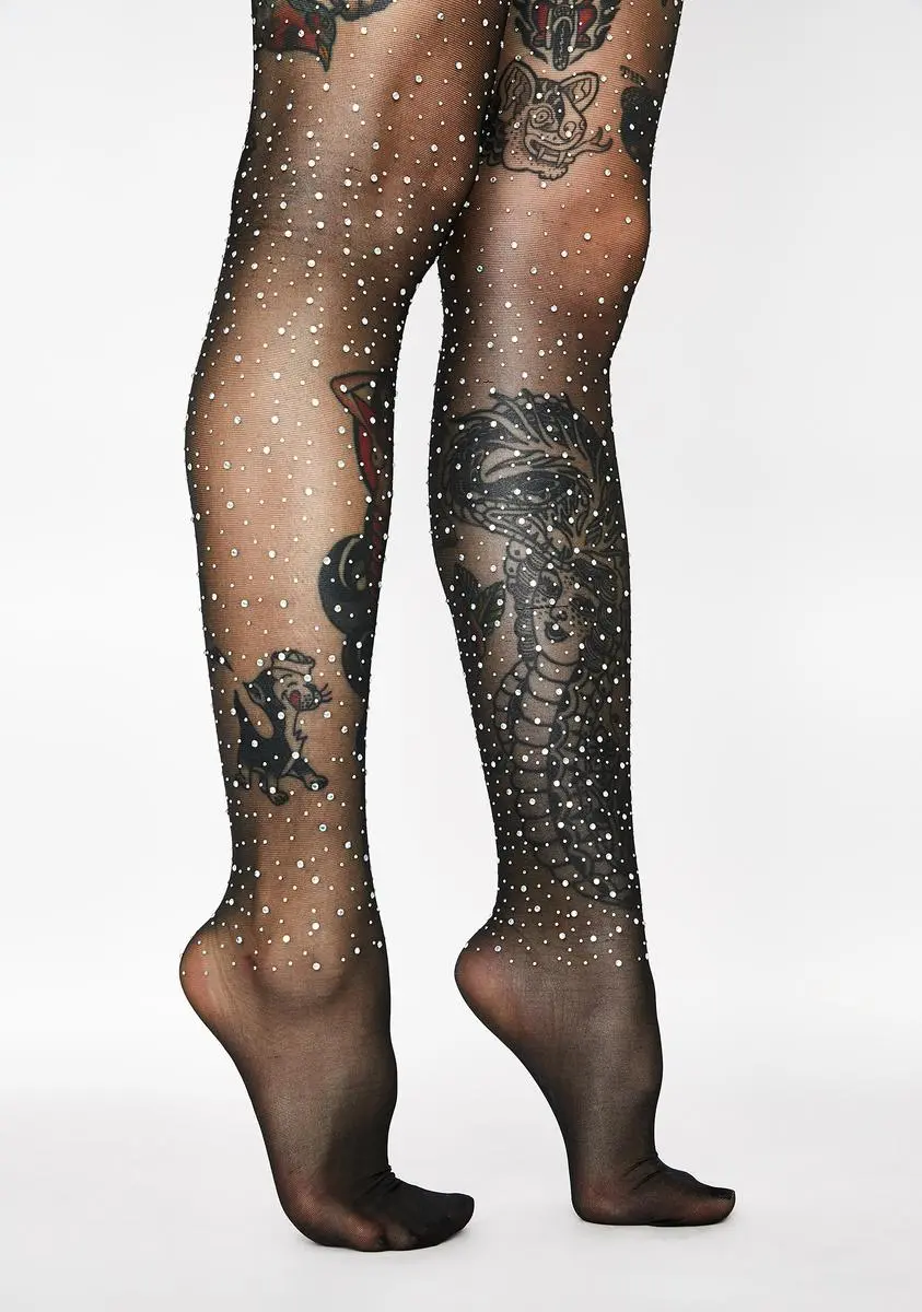 cuz u got a glow in the night time, bb! Give them a show looking cute in the moonlight while wearing these rhinestone covered sheer tights with a stretchy fit.