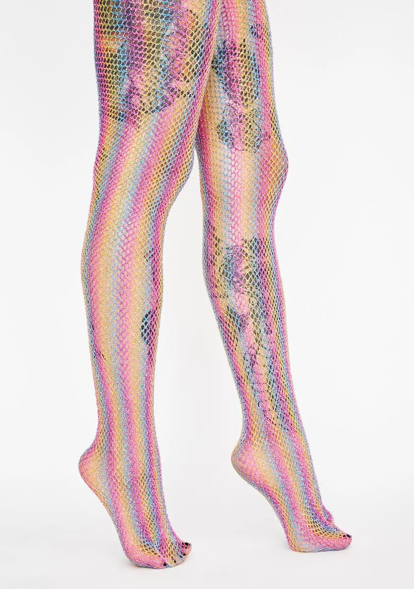 taste like candyyy! You’re their lil candy crush in these fishnet tights thave have a shimmerin’ freaky rainbow stripe all ova N’ are stretchy AF.