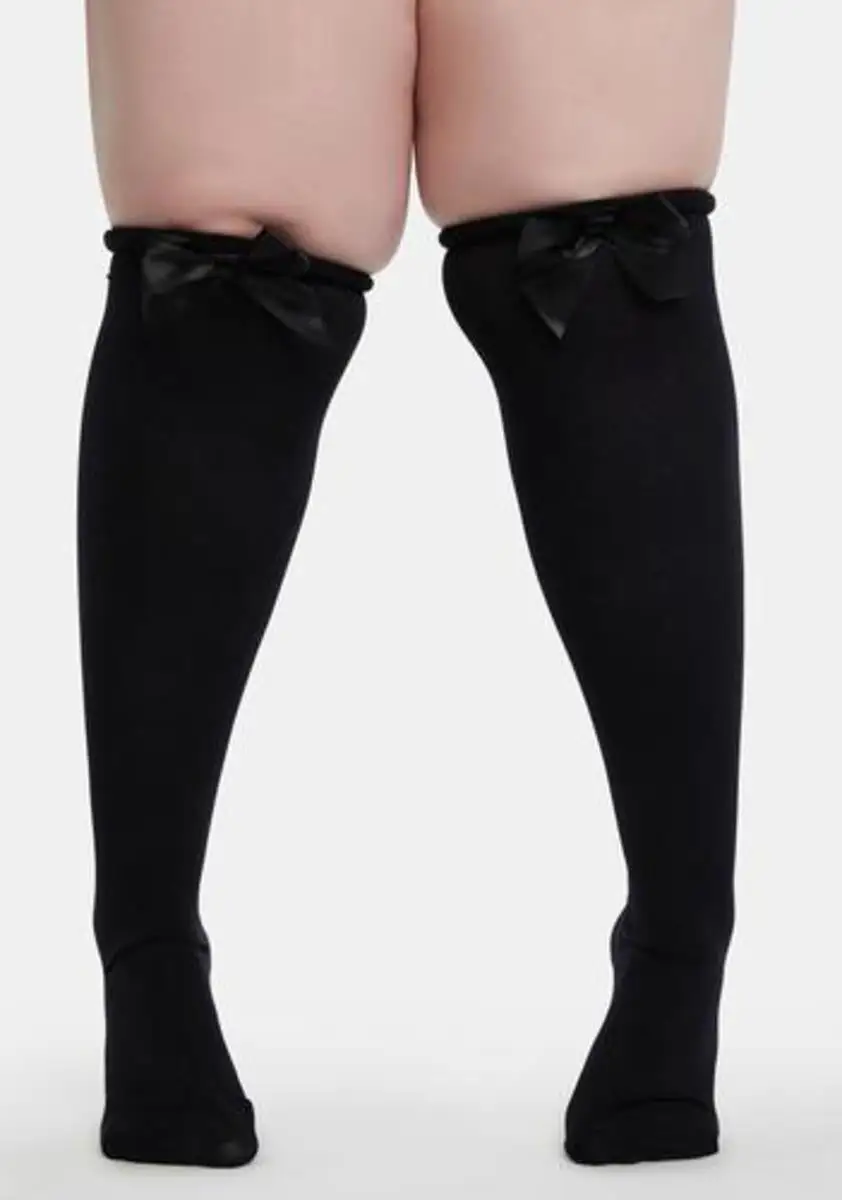 cuz the sky’s the limit! Make waves with these plus size thigh highs that have satin bows on the front.