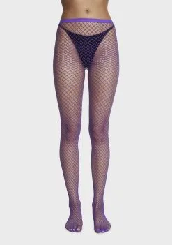 cuz you stand out from the crowd. These fishnet tights have a bright purple construction and a stretchy pull-on fit.