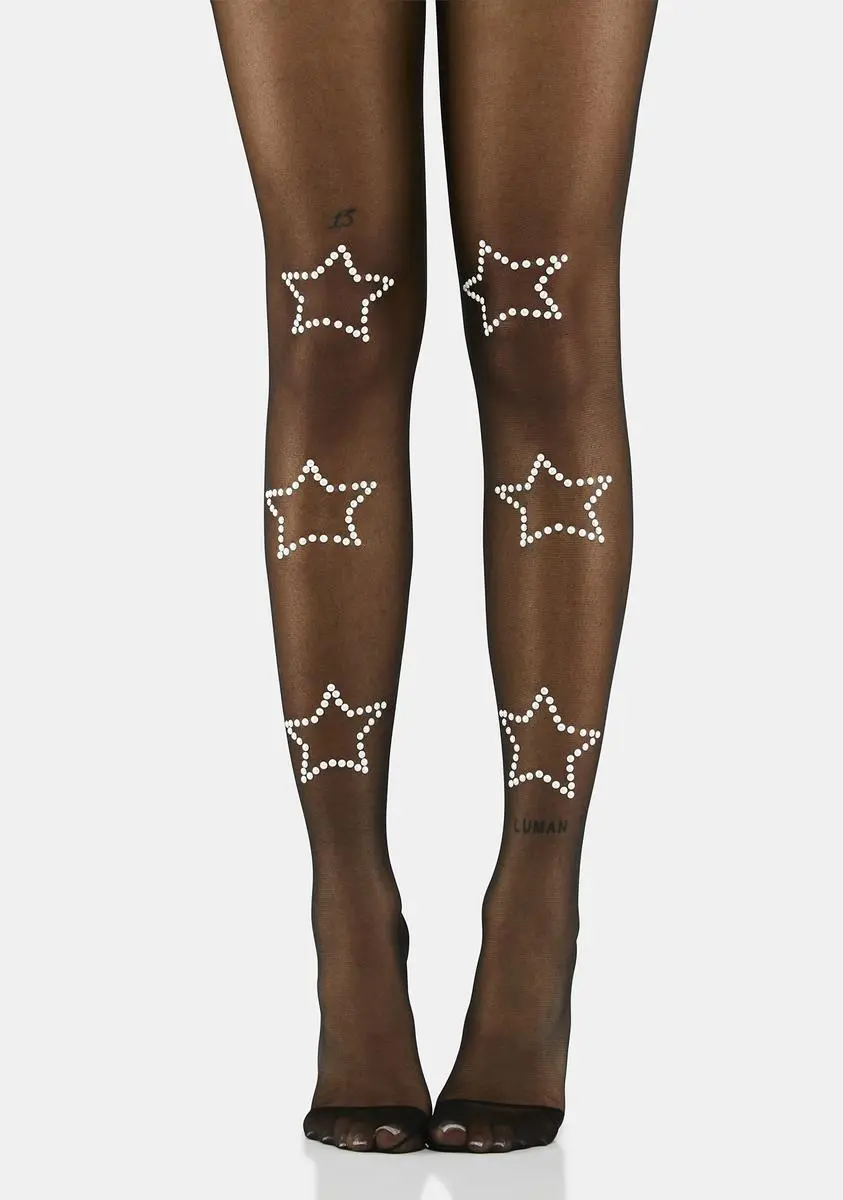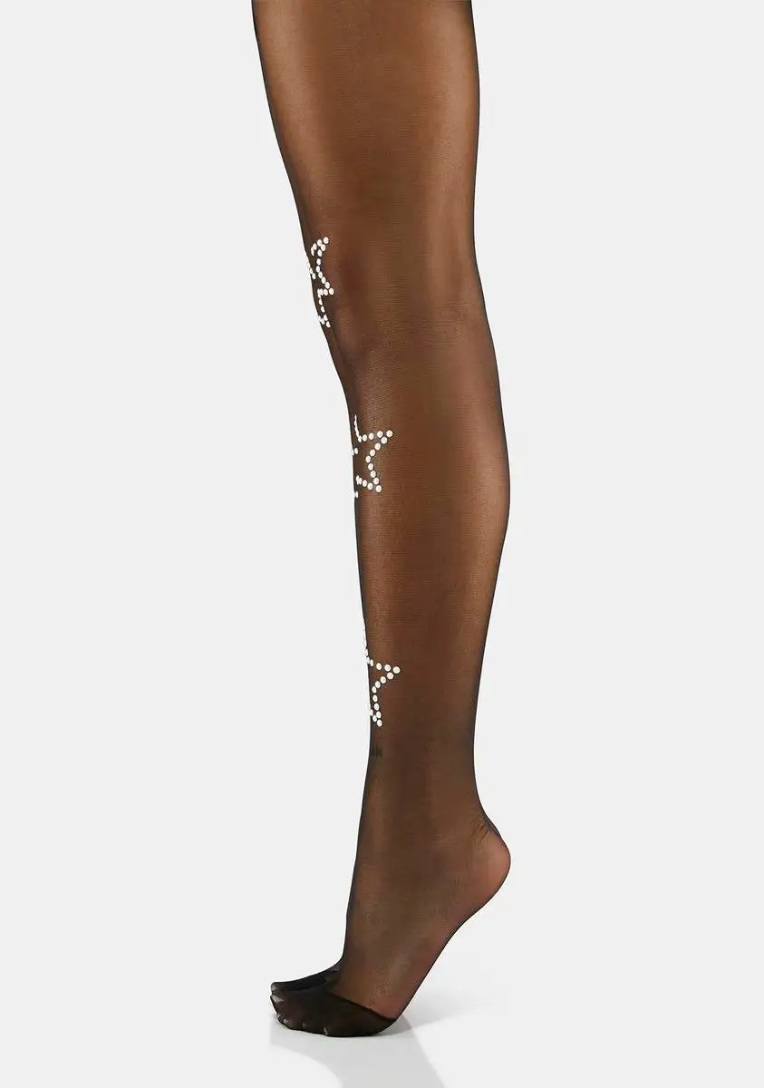 cuz you were made from stardust. Sparkle with these tights that have a sheer construction and star shaped pearl detailing on the front.