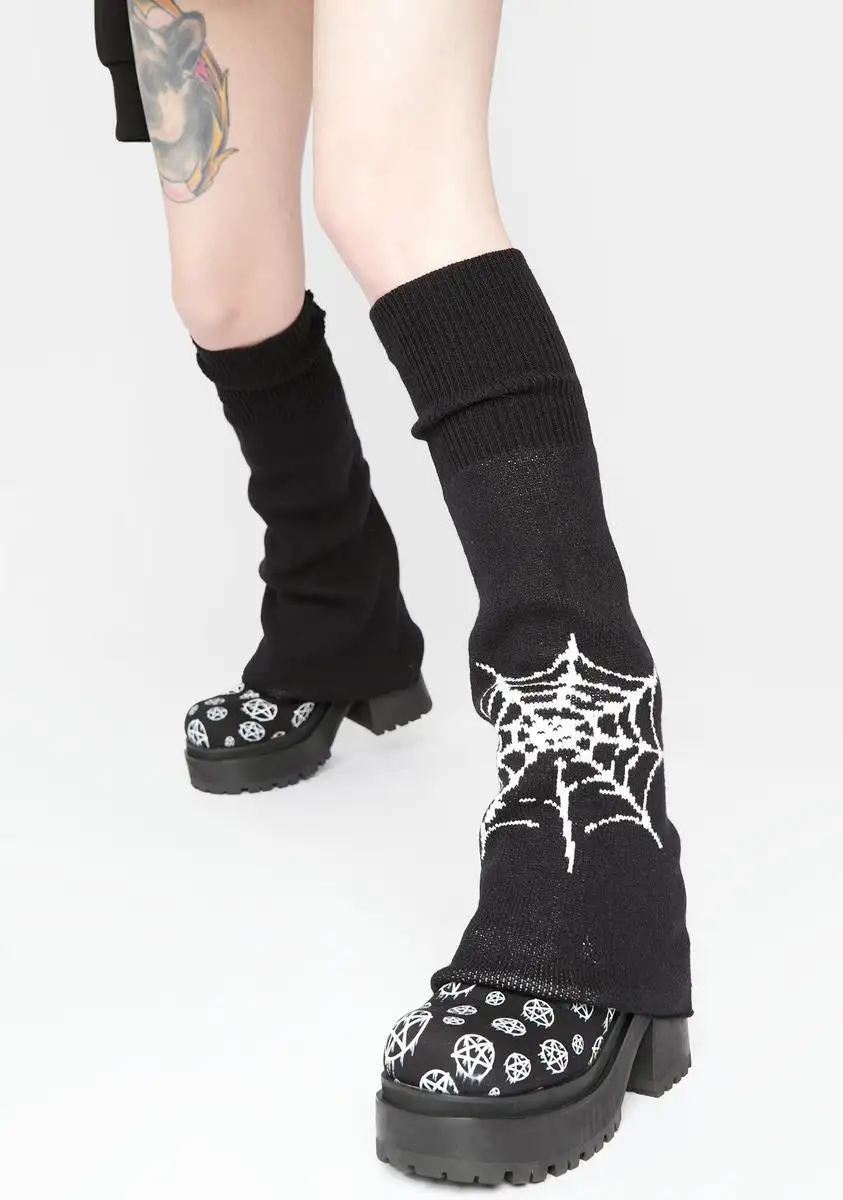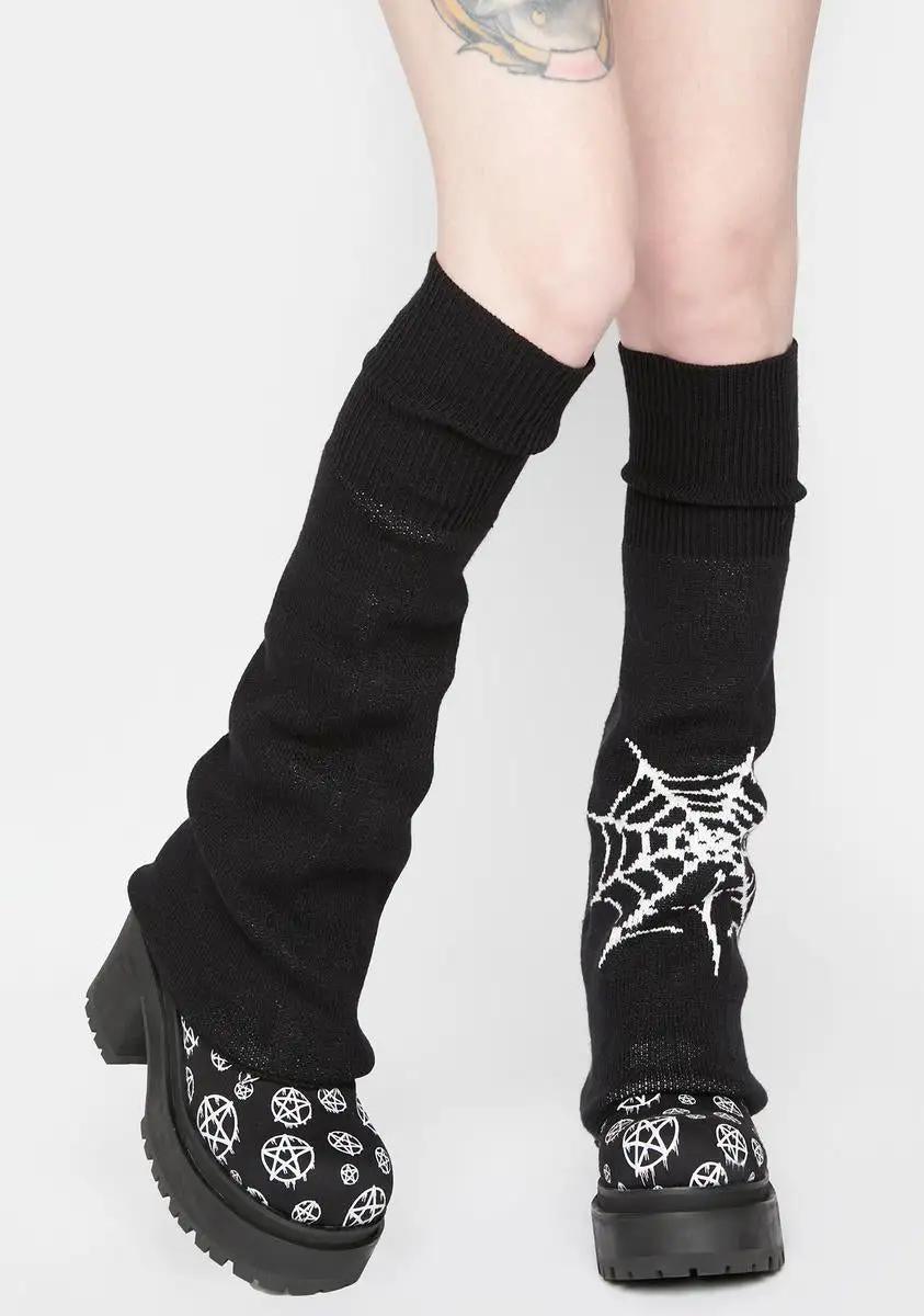 have a knit ribbed construction and a spider web design on one side.
