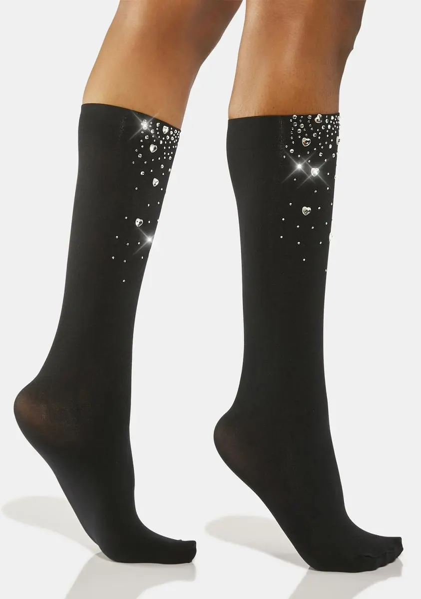 cuz all hope is lost. These socks come in a sheer construction, knee high length, with rhinestone details.