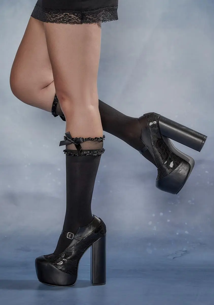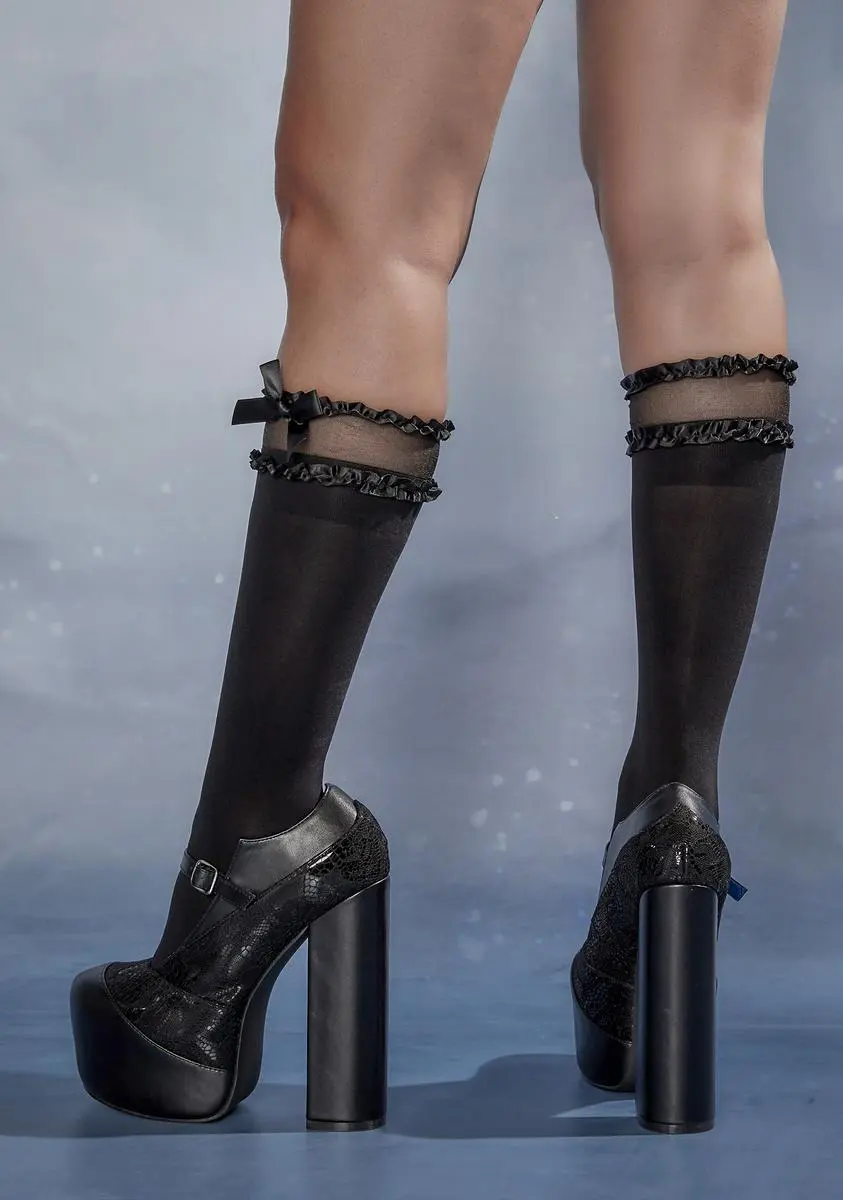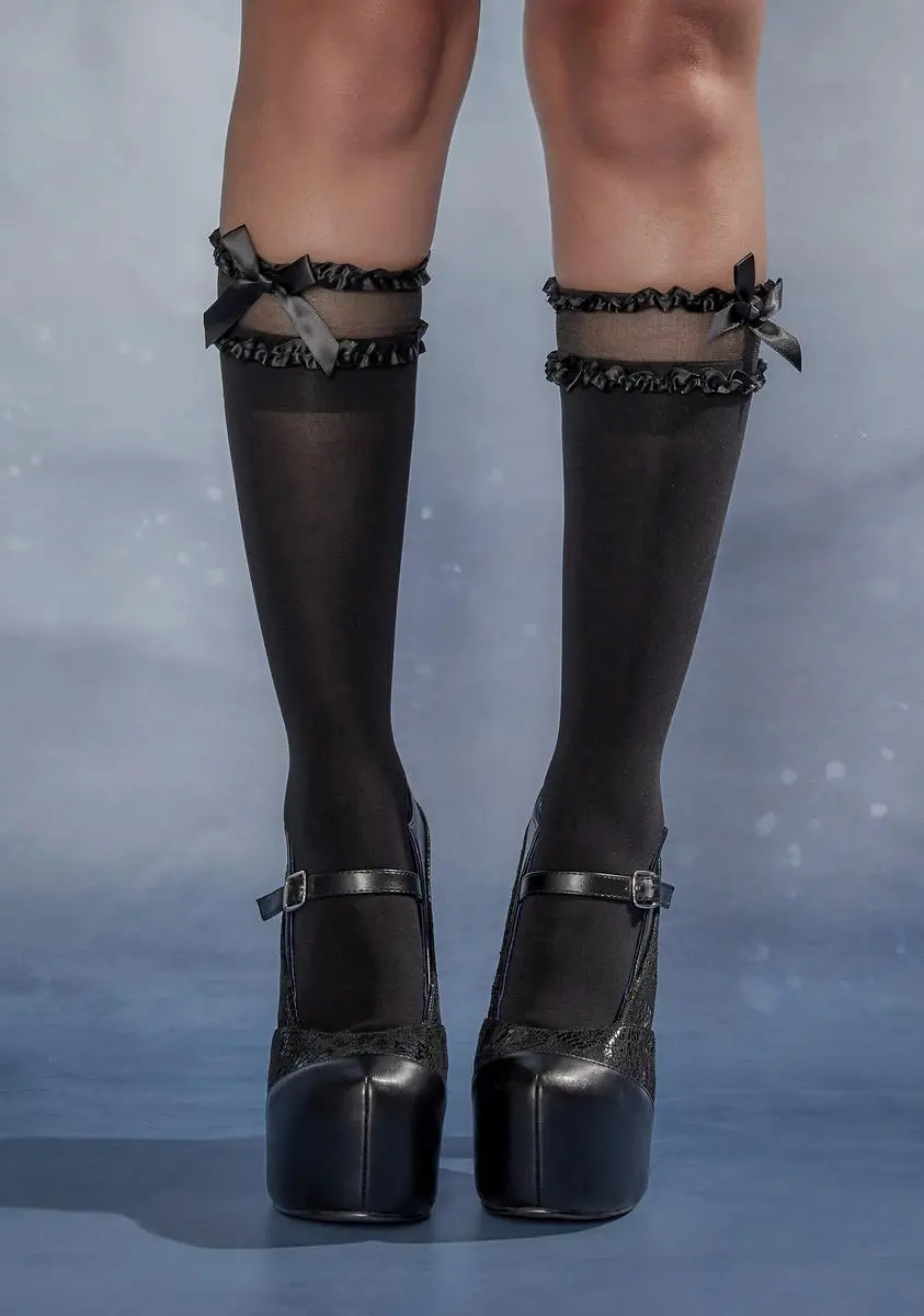 cuz itâs everlasting magic. These knee high socks have sheer panels with bows and ruffles.