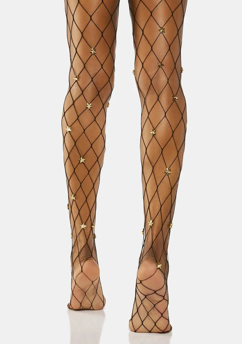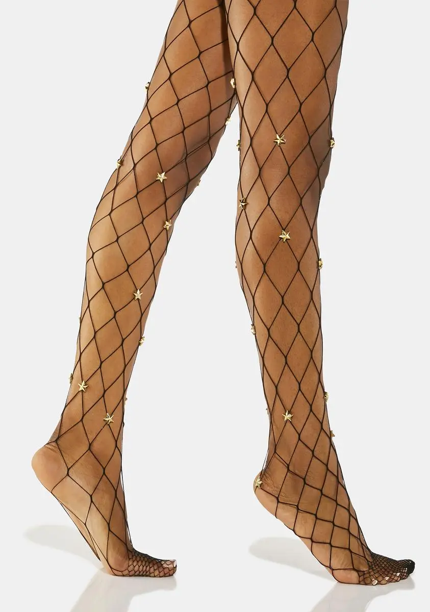 cuz you sparkle it up! Look glam with these tights that have a sheer fishnet construction and gold star detailing.