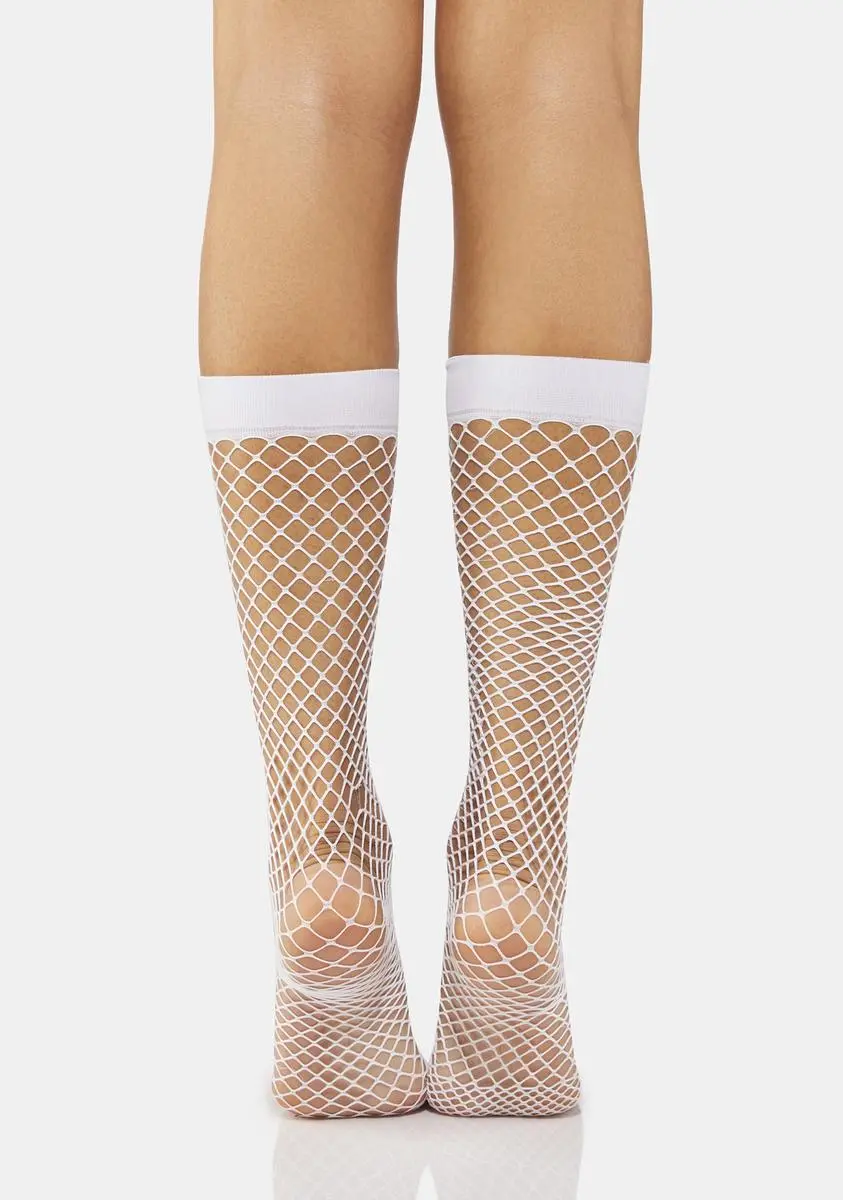 cuz you’re not from this planet, babe! These stretchy fishnet socks have alien head charms on the front.