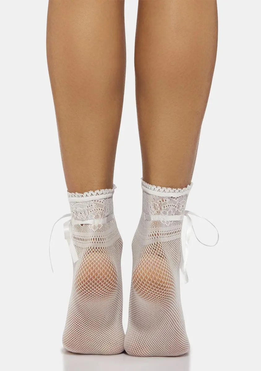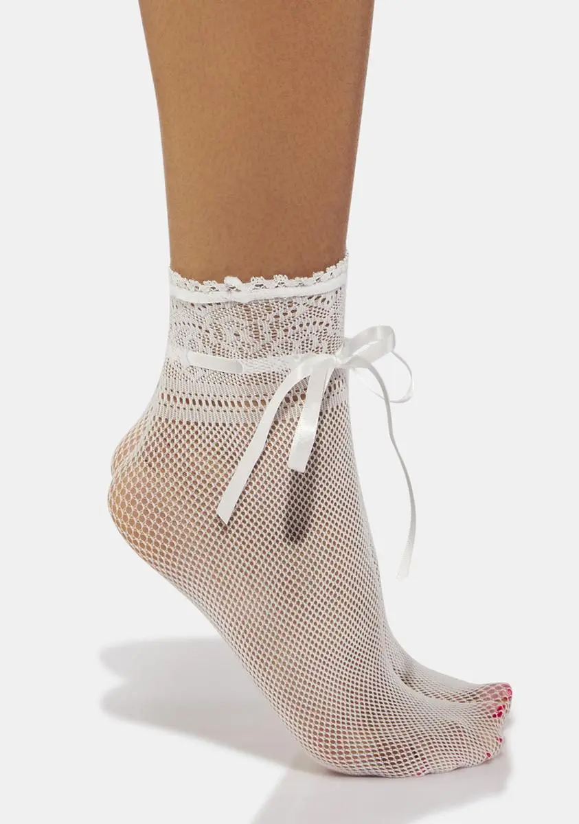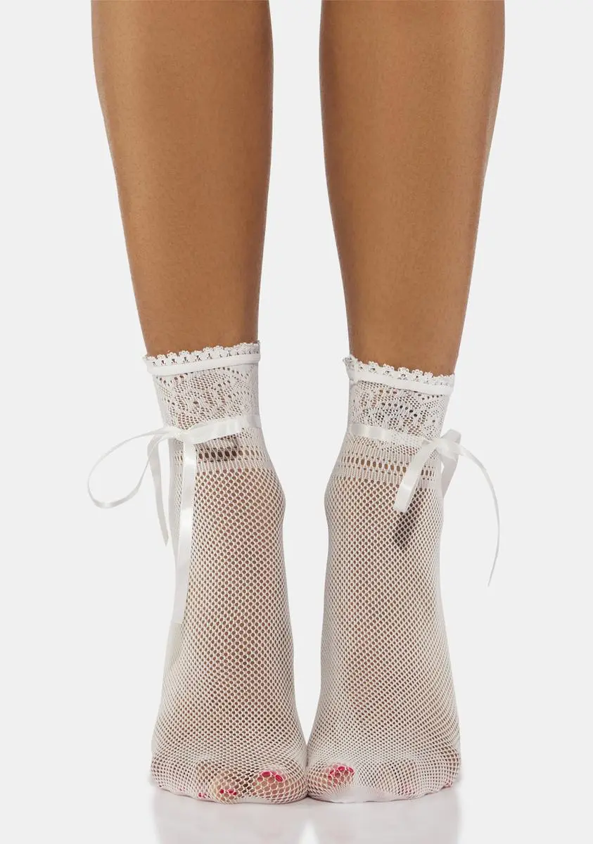 cuz you’re blushing up a storm. These crew socks have a lace construction and bows on the front.