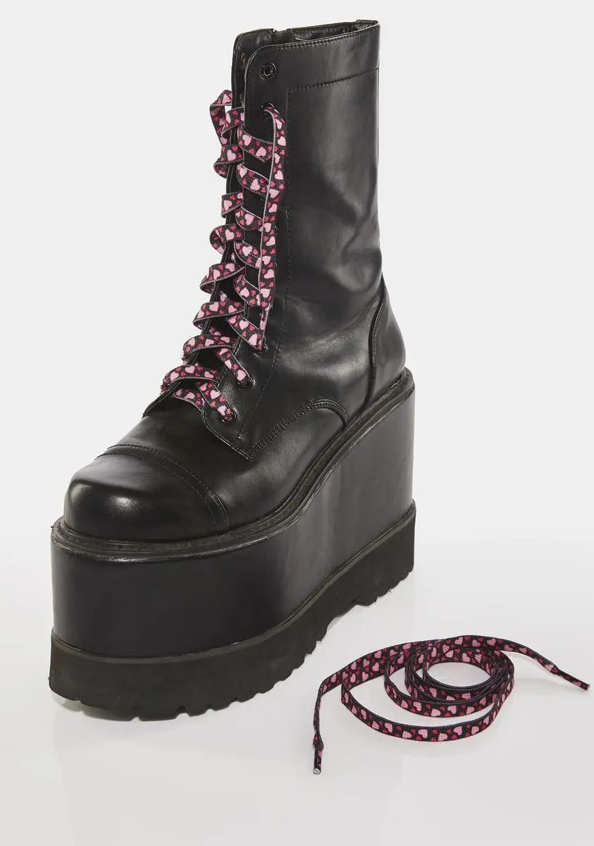 I love to love you! These shoe laces have a multi-color heart print.
